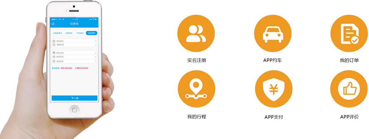 乘車人通過一個APP,完成用車申請,審批,評價等功能,極大提高用戶體驗。